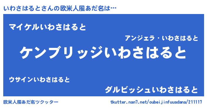 | 女子向けラノベタイトル風あだ名 | 『いわさはるとなんてお断りですっ。』 |