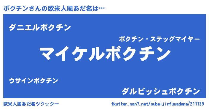 | 男性向けラノベタイトル風あだ名 | 『ボクチンの憂鬱』 |