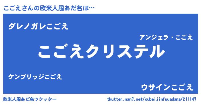 | 女子向けラノベタイトル風あだ名 | 『こごえの婚約者』『こごえは平凡を望む』 |