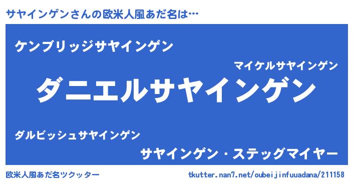 | 男性向けラノベタイトル風あだ名 | 『ノーゲーム・ノーサヤインゲン』 |