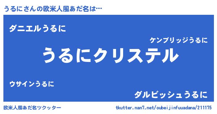 | ヒーロー風カッコイイあだ名 | 『ウルトラうるにマン』『ネオウルニ』 |