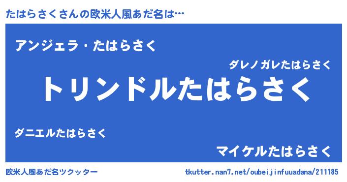 | 男性向けラノベタイトル風あだ名 | 『たはらさく~年齢イコール彼女いない歴の魔法使い~』 |
