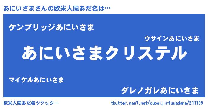 | 意味不明あだ名 | 『あにいさまフォーエバー』 |
