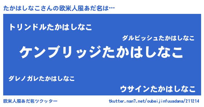 | 意味不明あだ名 | 『自称たかはしなこ』 |