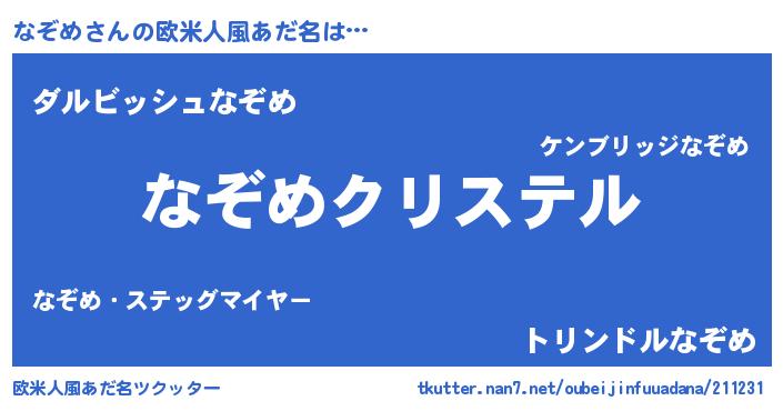 | ファンタジー風あだ名 | 『エターナルナゾメー』『ナゾディッシュ』 |