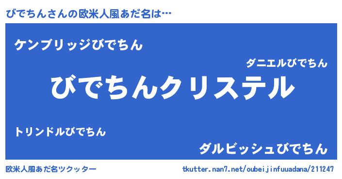 | ファンタジー風あだ名 | 『エターナルビデチンー』『ゼビデトゥ』 |