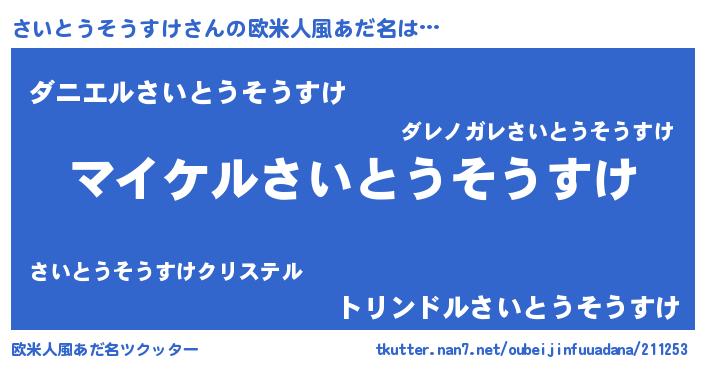 | 女子向けラノベタイトル風あだ名 | 『誰かこのさいとうそうすけを説明してください! ~契約から始まるウェディング~』 |