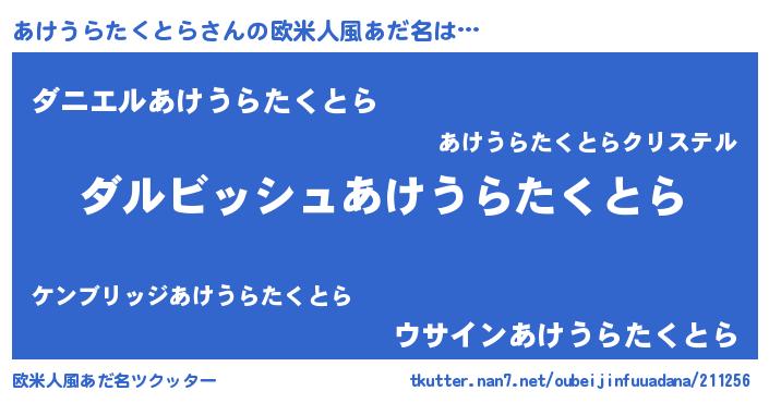 | 意味不明あだ名 | 『永久保存あけうらたくとら』 |