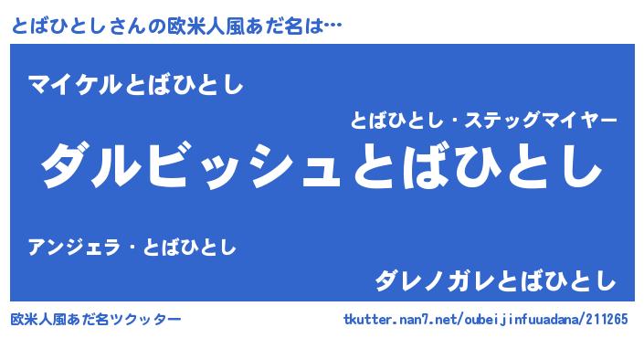 | 男性向けラノベタイトル風あだ名 | 『とばひとしという概念が存在しない退屈な世界 』 |