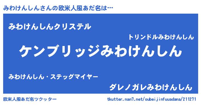 | 意味不明あだ名 | 『自称みわけんしん』 |