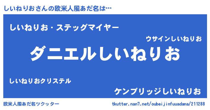 | 男性向けラノベタイトル風あだ名 | 『おまえをオタクにしてやるから、俺をしいねりおにしてくれ! 』 |