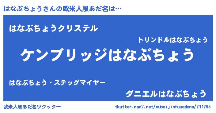 | 女子向けラノベタイトル風あだ名 | 『はなぶちょうストレイドッグス』 |