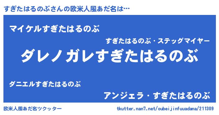| 意味不明あだ名 | 『住所不定無職すぎたはるのぶ(62歳)』 |