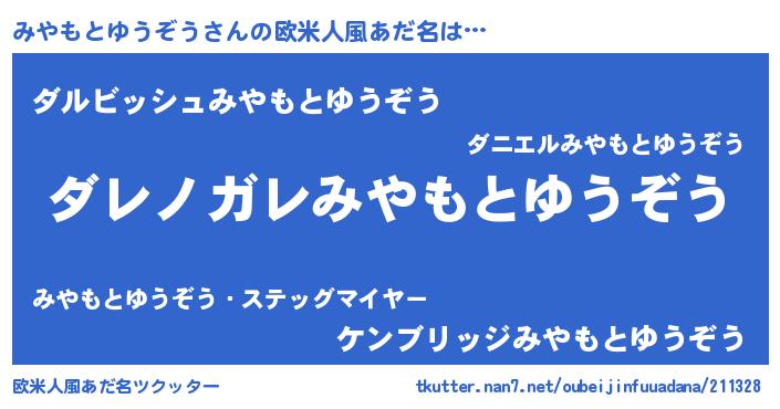 | ヘコむあだ名 | 『みやもとゆうぞう(笑)』『豆乳』 |