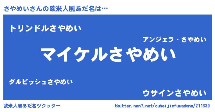 | 男性向けラノベタイトル風あだ名 | 『サヤメイアートオンライン』 |