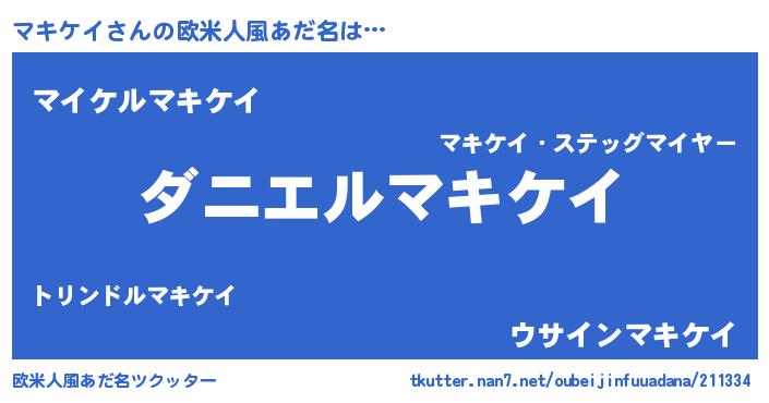 | 男性向けラノベタイトル風あだ名 | 『おまえをオタクにしてやるから、俺をマキケイにしてくれ! 』 |
