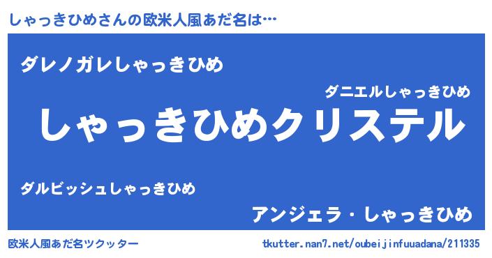 | 女子向けラノベタイトル風あだ名 | 『しゃっきひめの雑貨屋さん』 |
