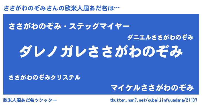 | 意味不明あだ名 | 『住所不定無職ささがわのぞみ(68歳)』 |