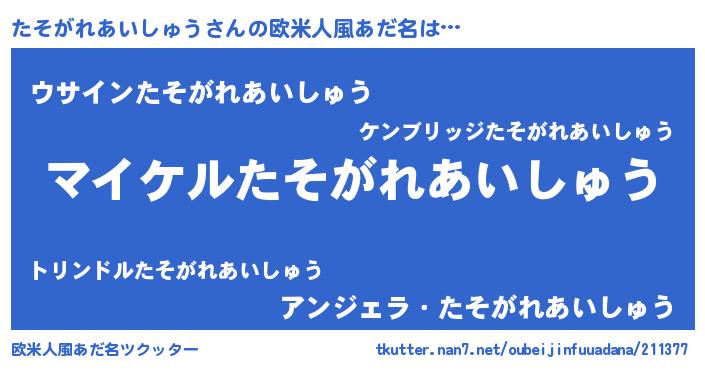 | 男性向けラノベタイトル風あだ名 | 『たそがれあいしゅうの憂鬱』 |