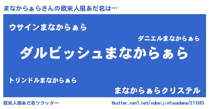 | 胡散臭い通販商品みたいなあだ名 | 『来世でも幸せになれる健康食品…その名も「まなからぁら」』 |