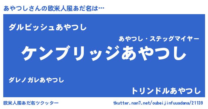 | 男性向けラノベタイトル風あだ名 | 『Re:あやつしから始める異世界生活』 |