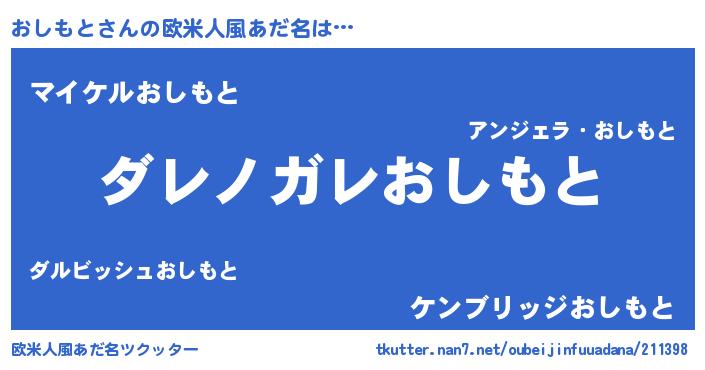 | 意味不明あだ名 | 『住所不定無職おしもと(86歳)』 |