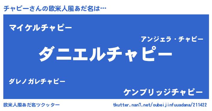 | 女子向けラノベタイトル風あだ名 | 『死神チャピーの再婚』『闇のチャピー』 |