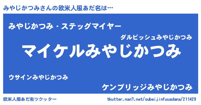 | ヘコむあだ名 | 『みやにー』『みやじかつみ(震え声)』 |