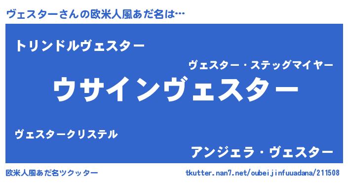 | 男性向けラノベタイトル風あだ名 | 『ヴェスターの嫁は女の子じゃないと思った?』 |