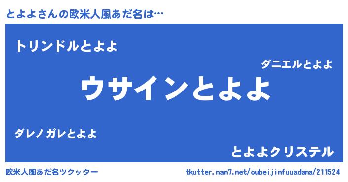 | 男性向けラノベタイトル風あだ名 | 『とよよの嫁は女の子じゃないと思った?』 |
