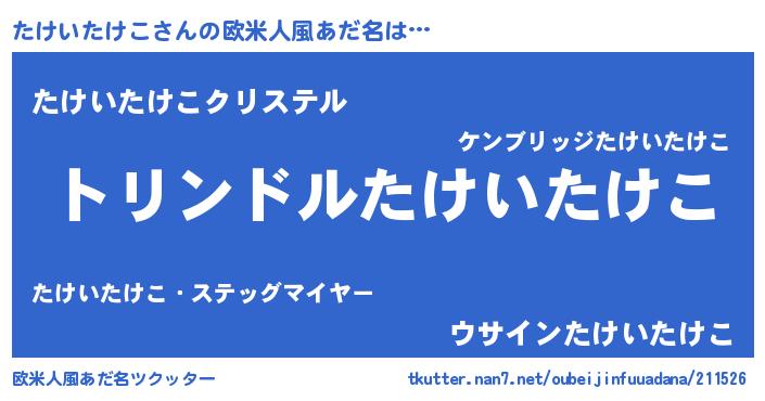 | 男性向けラノベタイトル風あだ名 | 『タケイタケコスレイヤー』 |