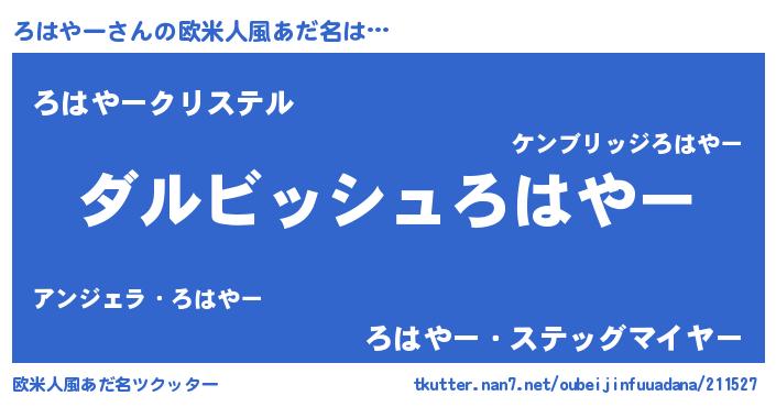 | 意味不明あだ名 | 『永久保存ろはやー』『自称ろはやー』 |