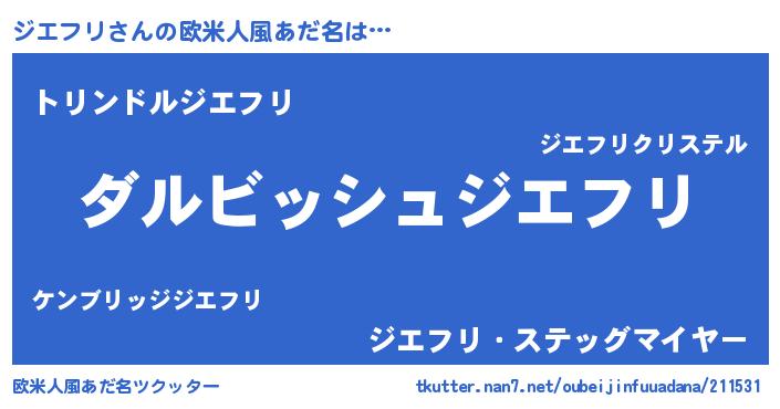 | 男性向けラノベタイトル風あだ名 | 『ジエフリという概念が存在しない退屈な世界 』 |