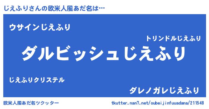 | 男性向けラノベタイトル風あだ名 | 『じえふりという概念が存在しない退屈な世界 』 |