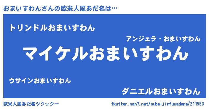 | 女子向けラノベタイトル風あだ名 | 『(仮)おまいすわんのやんごとなき事情』 |