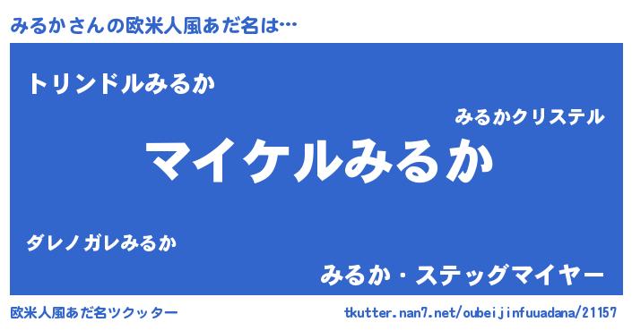 | 男性向けラノベタイトル風あだ名 | 『みるかの憂鬱』『緋弾のミルカ』 |
