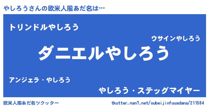 | 男性向けラノベタイトル風あだ名 | 『おまえをオタクにしてやるから、俺をやしろうにしてくれ! 』 |