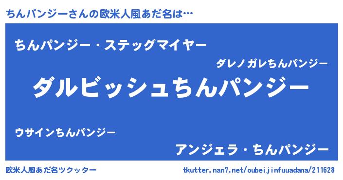 | 男性向けラノベタイトル風あだ名 | 『ちんパンジーという概念が存在しない退屈な世界 』 |