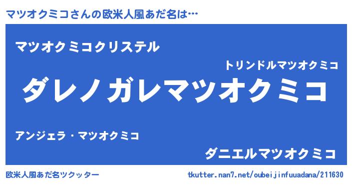 | 男性向けラノベタイトル風あだ名 | 『この素晴らしい世界にマツオクミコを!』 |