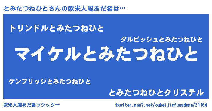 | 男性向けラノベタイトル風あだ名 | 『とみたつねひとの憂鬱』 |