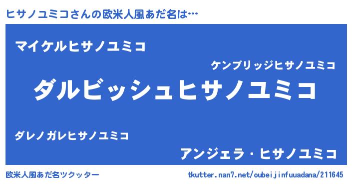 | 男性向けラノベタイトル風あだ名 | 『誰もが恐れるあのヒサノユミコが、ぼくの専属メイドになるようです。』 |