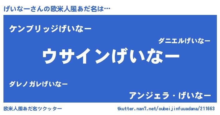 | 意味不明あだ名 | 『とにかく怪しいげいなー』 |