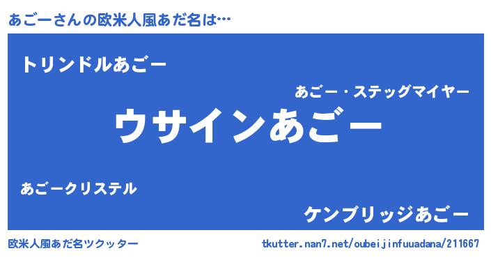| 男性向けラノベタイトル風あだ名 | 『ダンジョンにあごーを求めるのは間違っているだろうか』 |