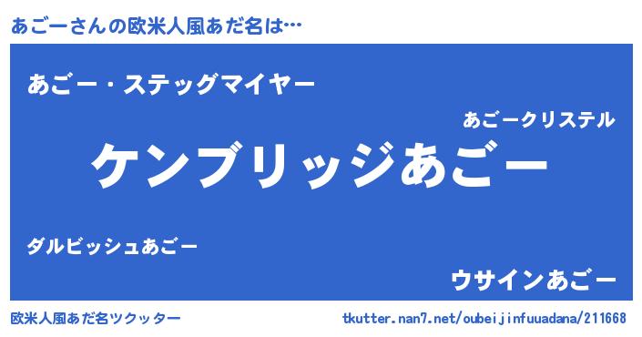| 意味不明あだ名 | 『自称あごー』『とにかく怪しいあごー』 |