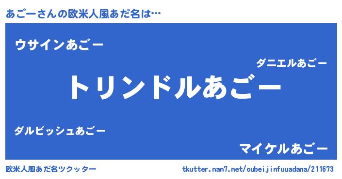 | ピコ太郎風あだ名 | 『アゴ二郎』『アコ八郎』『アア太郎』 |