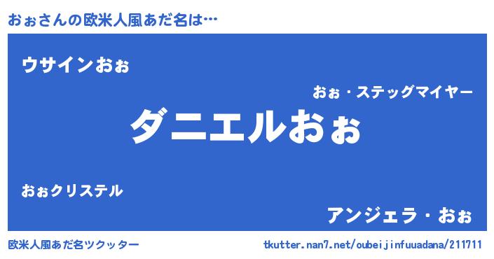 | 男性向けラノベタイトル風あだ名 | 『おまえをオタクにしてやるから、俺をおぉにしてくれ! 』 |