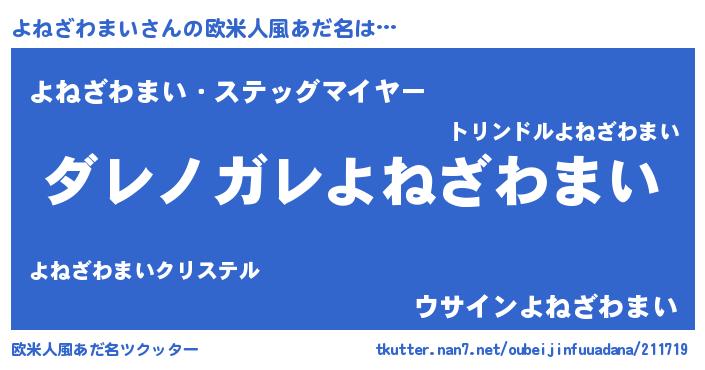 | 意味不明あだ名 | 『住所不定無職よねざわまい(43歳)』 |
