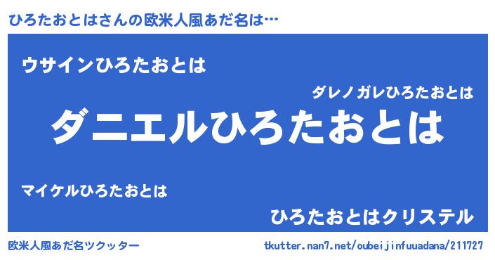 | 女子向けラノベタイトル風あだ名 | 『ひろたおとは夫妻のなれそめ』 |
