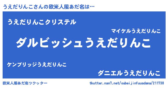 | 男性向けラノベタイトル風あだ名 | 『うえだりんこという概念が存在しない退屈な世界 』 |
