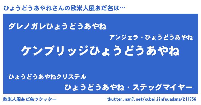 | 意味不明あだ名 | 『自称ひょうどうあやね』 |